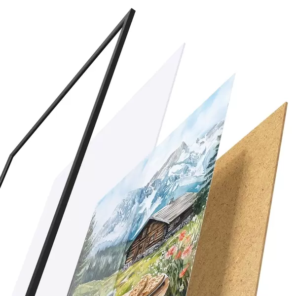 Plakat koosneb raamist, pleksiklaasist, trükitud pildist ja puitlaastplaadist alusplaadist. Tänu tagaküljel olevatele kinnitustele saab plakati kohe seinale riputada.