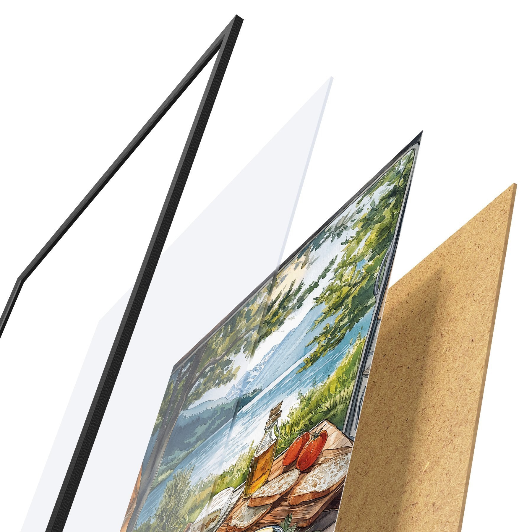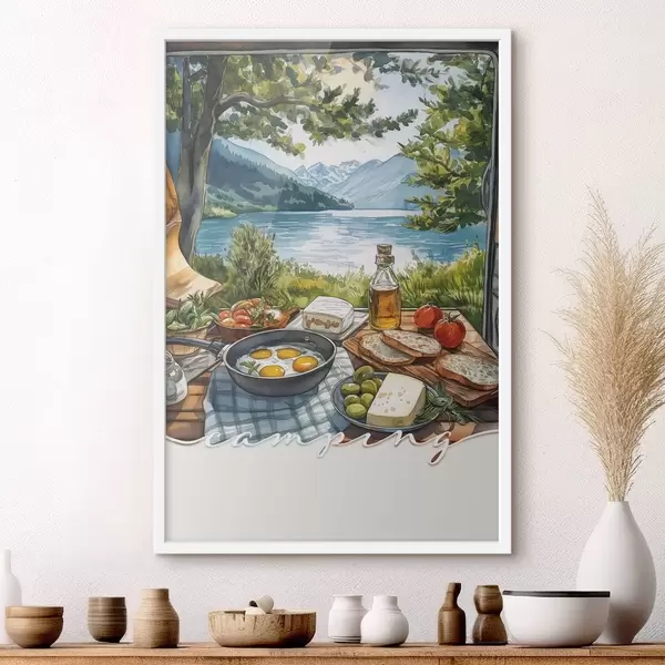 Plakat Telkimise esteetika, akvarellistiil, suvine järv, loodus, toit f42428