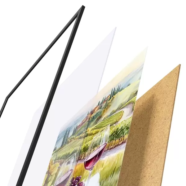 Plakat koosneb raamist, pleksiklaasist, trükitud pildist ja puitlaastplaadist alusplaadist. Tänu tagaküljel olevatele kinnitustele saab plakati kohe seinale riputada.