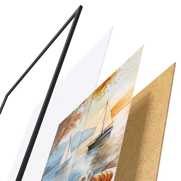 Plakat koosneb raamist, pleksiklaasist, trükitud pildist ja puitlaastplaadist alusplaadist. Tänu tagaküljel olevatele kinnitustele saab plakati kohe seinale riputada.