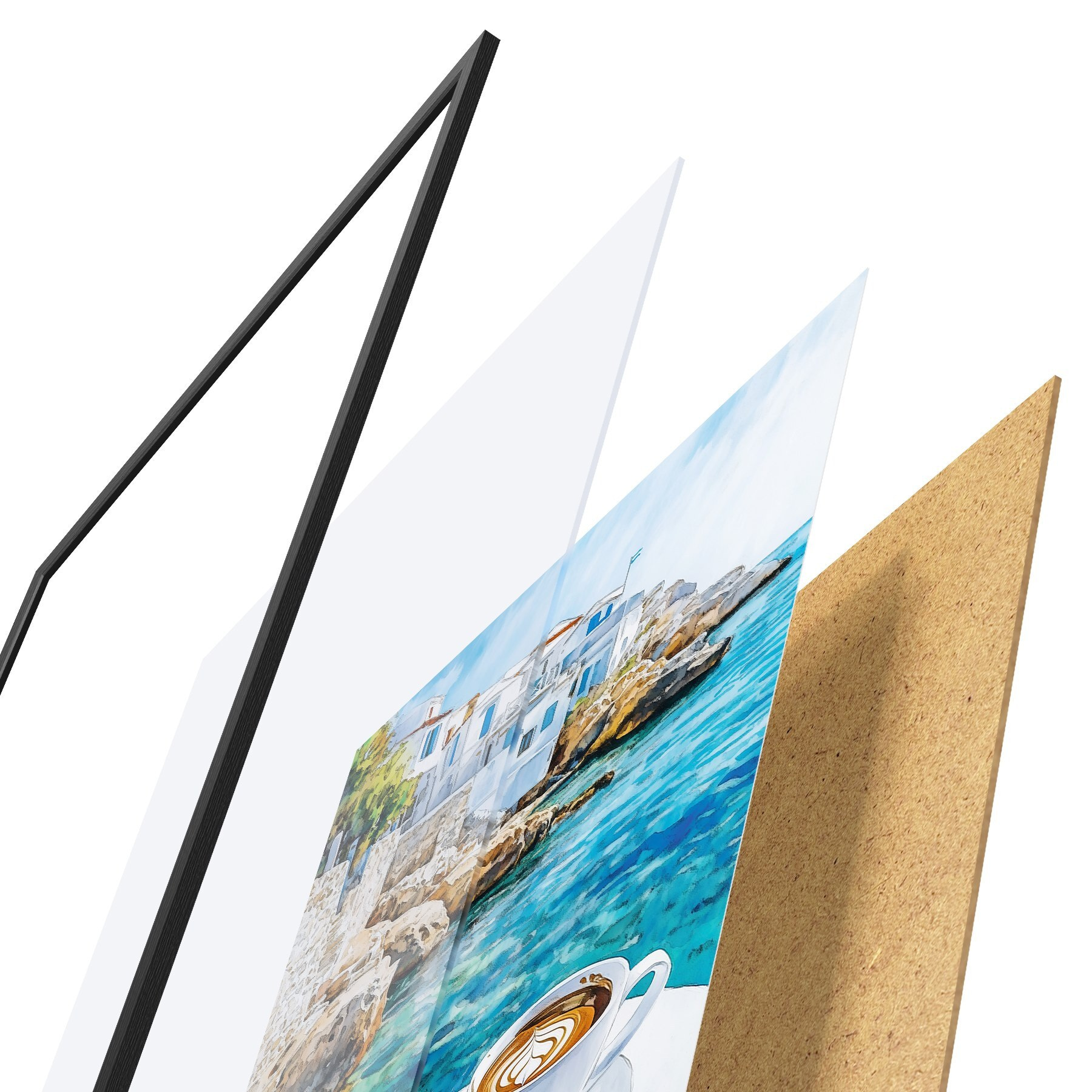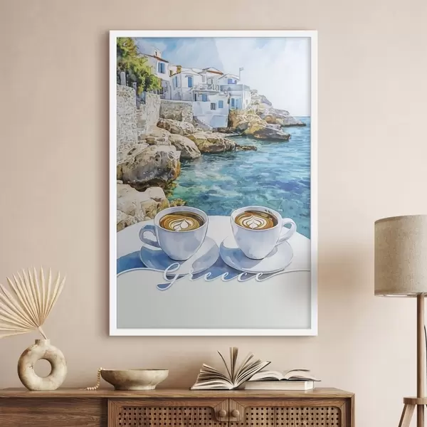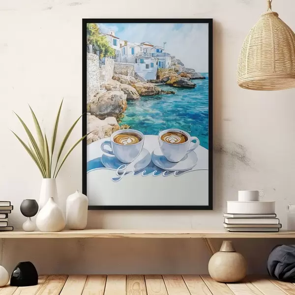 Poster Kreeka esteetika, kohvitassid, sinine meri, vanalinn, reisimine, reisimine Nr f42447