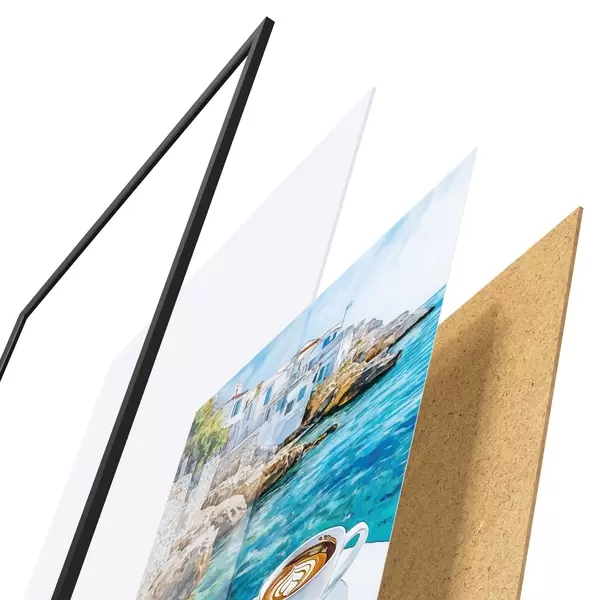 Plakat koosneb raamist, pleksiklaasist, trükitud pildist ja puitlaastplaadist alusplaadist. Tänu tagaküljel olevatele kinnitustele saab plakati kohe seinale riputada.
