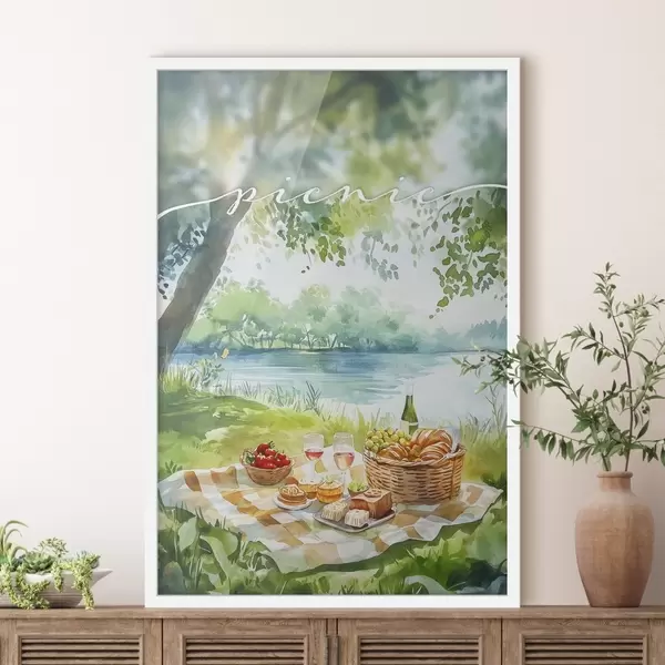 Poster Pikniku esteetika, suvine loodus, järv, romantiline, akvarellstiil Nr f42450
