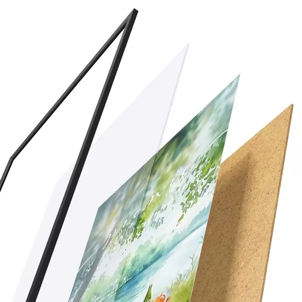 Plakat koosneb raamist, pleksiklaasist, trükitud pildist ja puitlaastplaadist alusplaadist. Tänu tagaküljel olevatele kinnitustele saab plakati kohe seinale riputada.