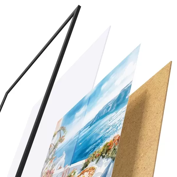 Plakat koosneb raamist, pleksiklaasist, trükitud pildist ja puitlaastplaadist alusplaadist. Tänu tagaküljel olevatele kinnitustele saab plakati kohe seinale riputada.
