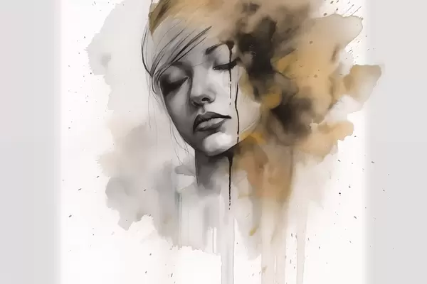 Poster Tüdruku portree akvarellitehnikas abstraktsete varjudega Nr f42474
