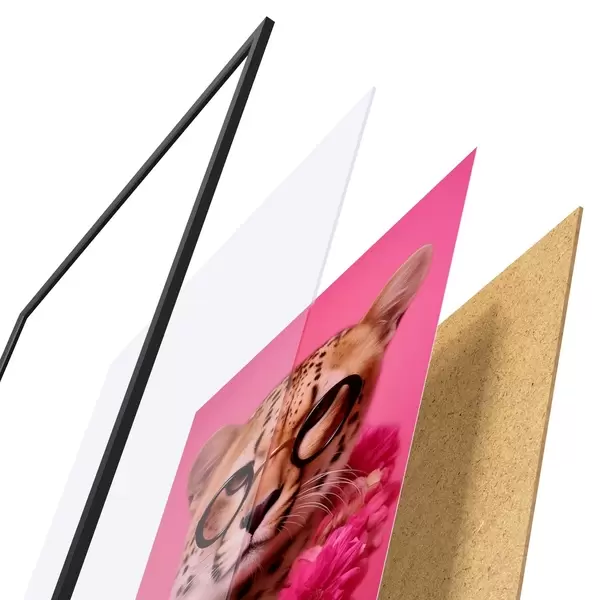 Plakat koosneb raamist, pleksiklaasist, trükitud pildist ja puitlaastplaadist alusplaadist. Tänu tagaküljel olevatele kinnitustele saab plakati kohe seinale riputada.