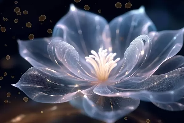 Poster Hele lill läbipaistvate kroonlehtedega tumedal taustal Nr f42488