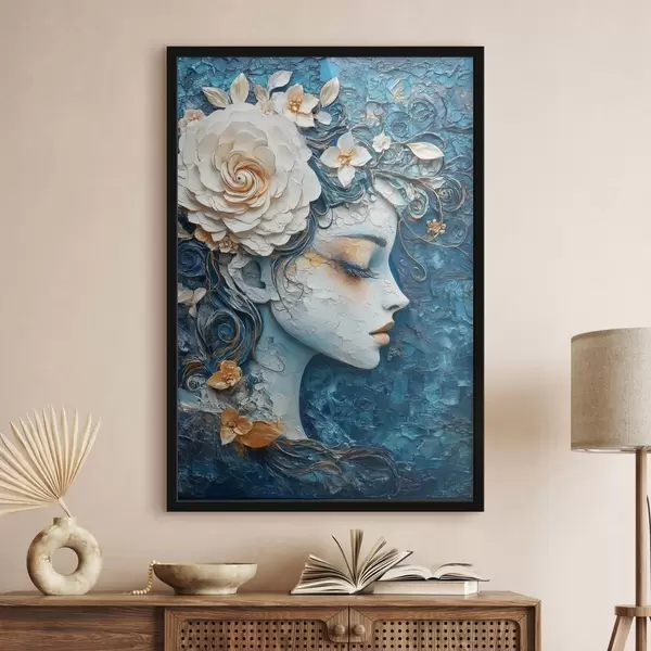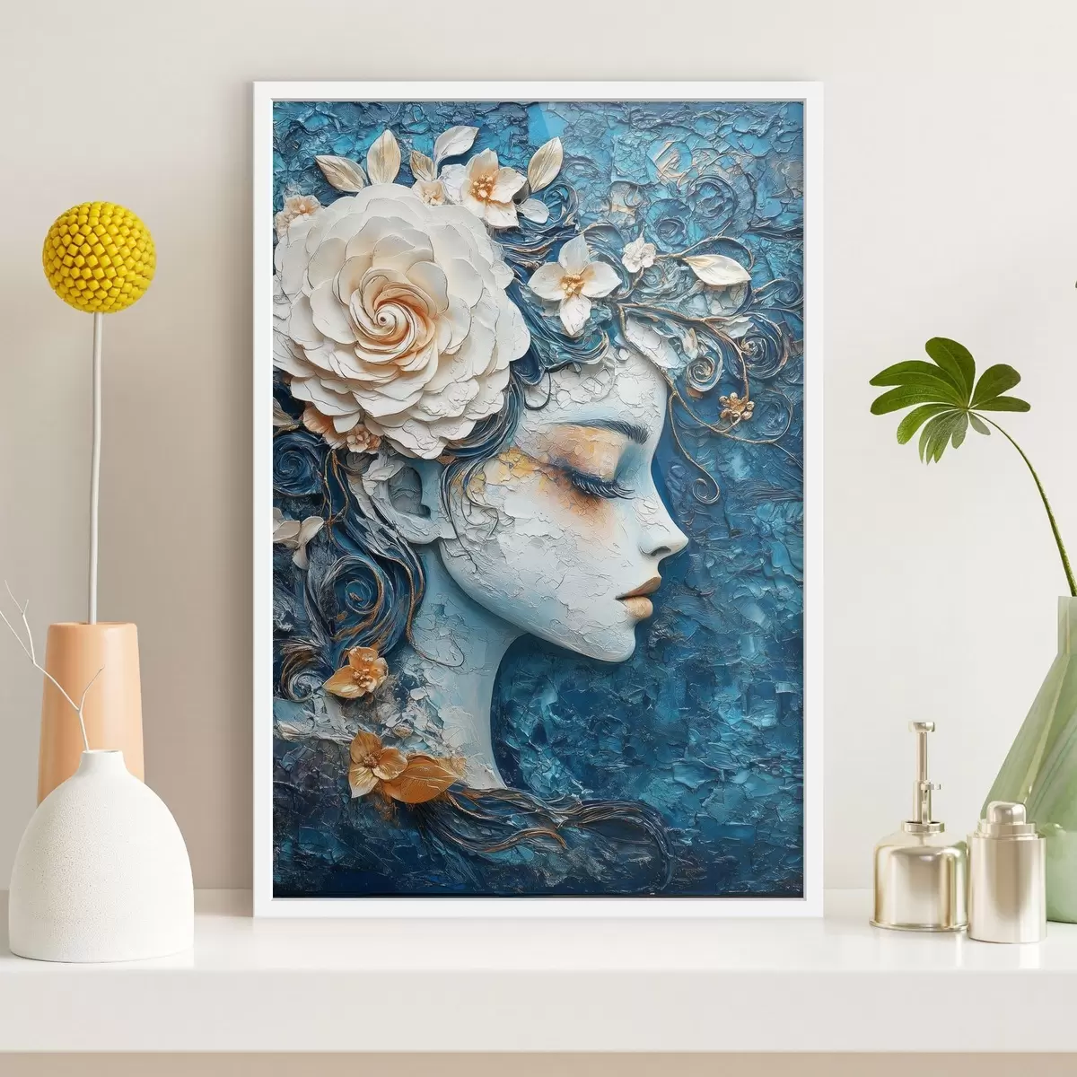 Plakat Joonis tüdruku profiililt sinistes toonides f42495