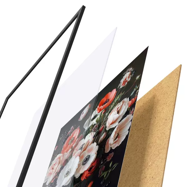 Plakat koosneb raamist, pleksiklaasist, trükitud pildist ja puitlaastplaadist alusplaadist. Tänu tagaküljel olevatele kinnitustele saab plakati kohe seinale riputada.