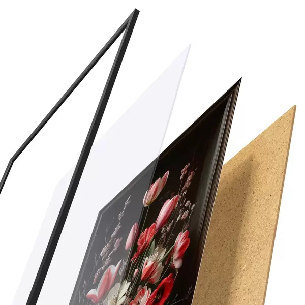 Plakat koosneb raamist, pleksiklaasist, trükitud pildist ja puitlaastplaadist alusplaadist. Tänu tagaküljel olevatele kinnitustele saab plakati kohe seinale riputada.