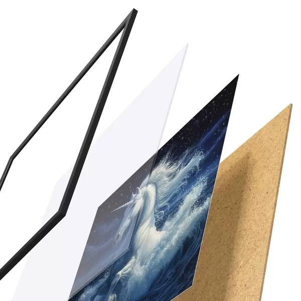 Plakat koosneb raamist, pleksiklaasist, trükitud pildist ja puitlaastplaadist alusplaadist. Tänu tagaküljel olevatele kinnitustele saab plakati kohe seinale riputada.