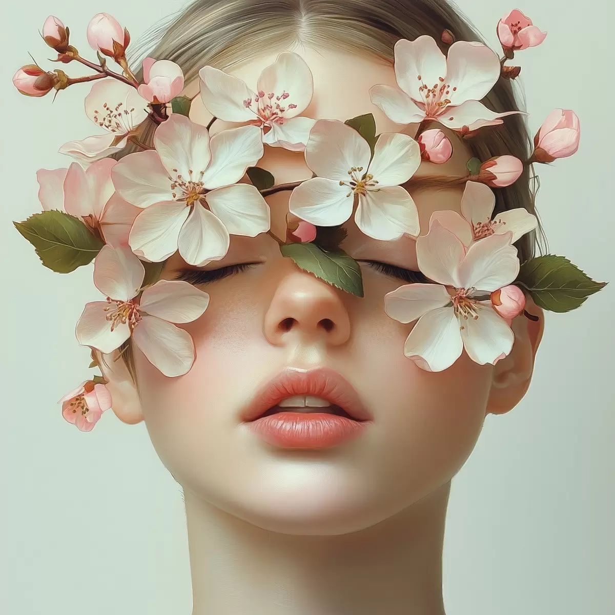 Poster Tüdruku portree lilledega näol Nr f42506