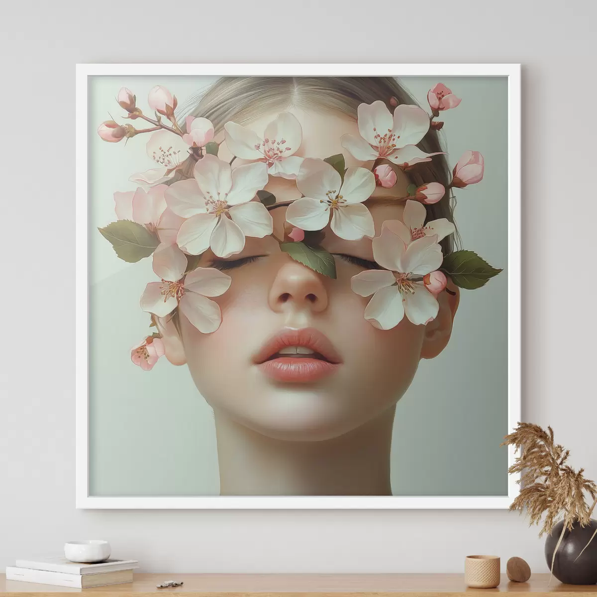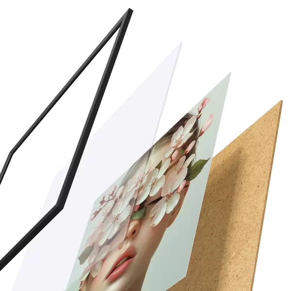 Plakat Tüdruku portree lilledega näol f42506