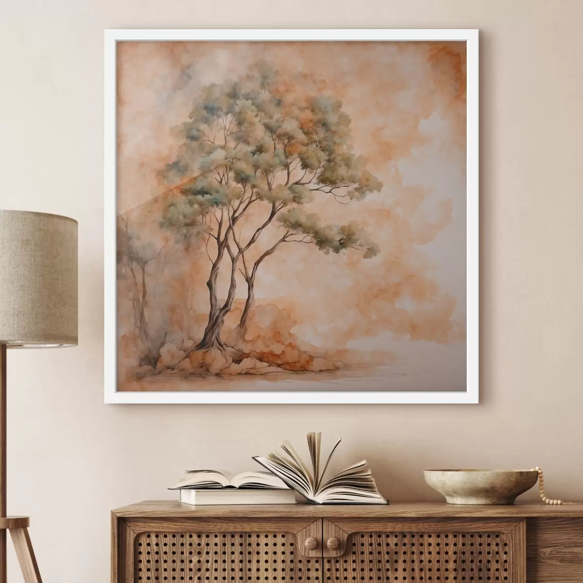 Poster Puu oranžil ja valgel taustal akvarellmaalide stiilis Nr f42514