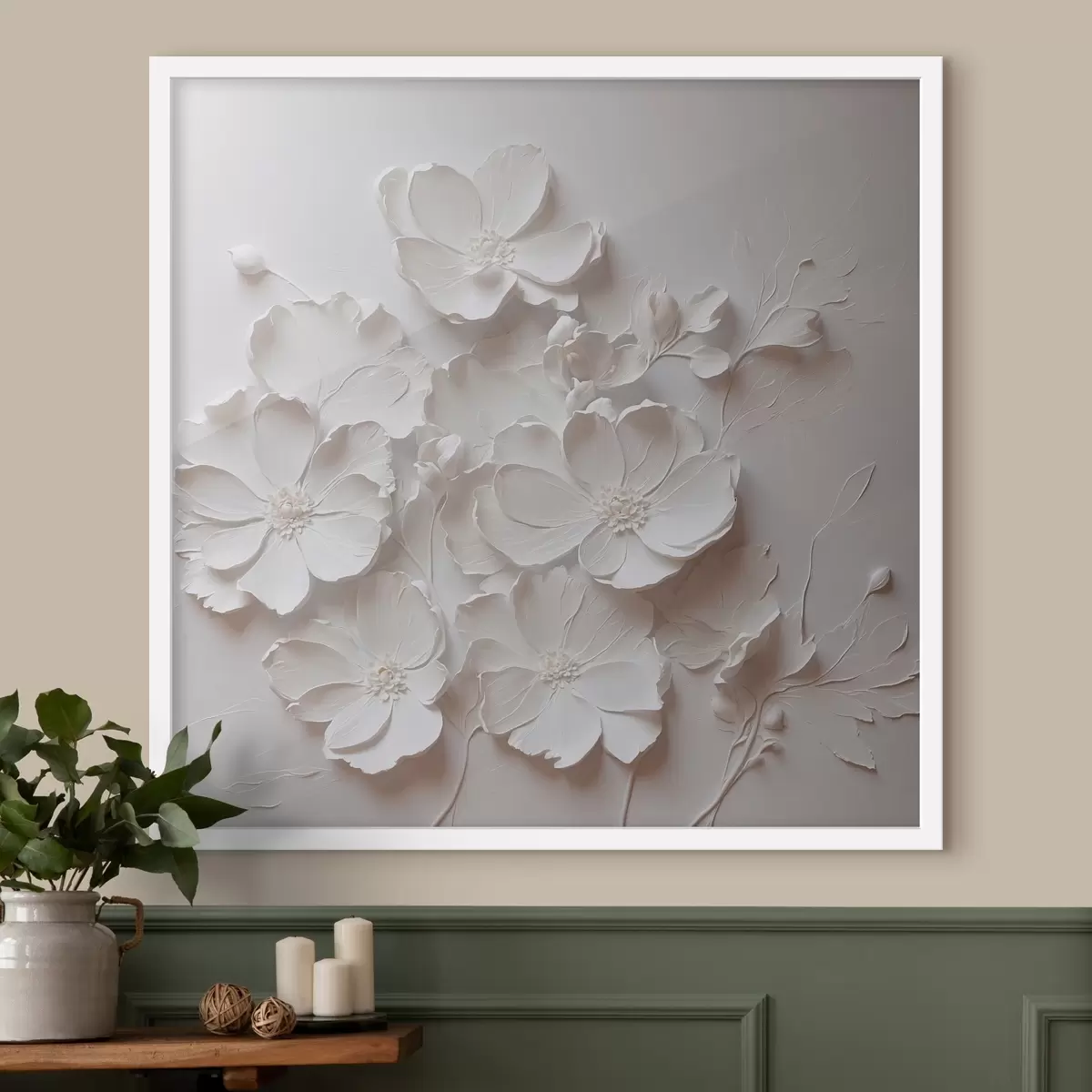 Plakat Valged lilled valgel taustal õlimaali stiilis f42516