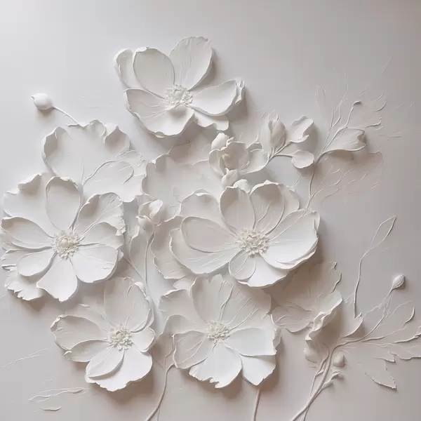 Plakat Valged lilled valgel taustal õlimaali stiilis f42516