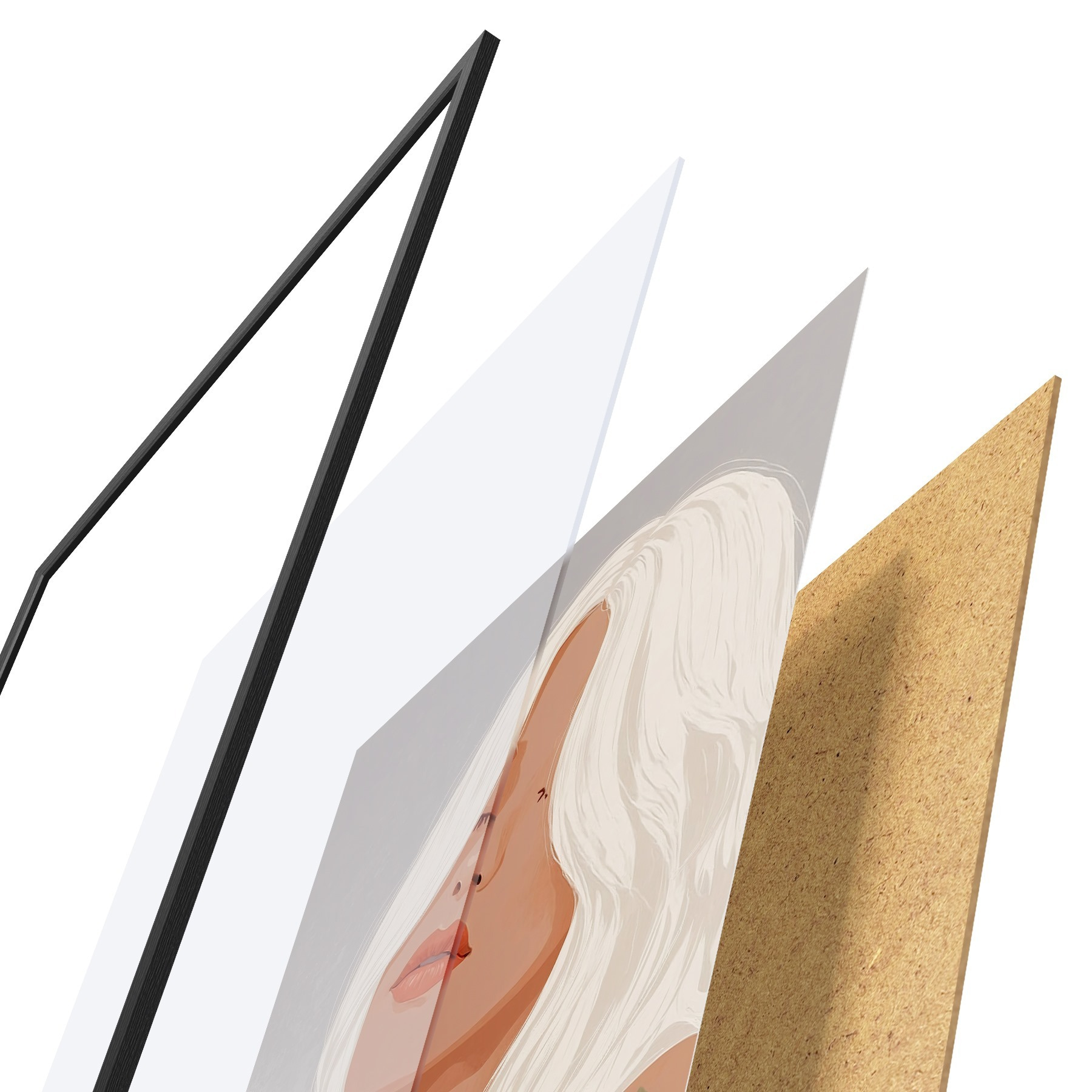 Plakat koosneb raamist, pleksiklaasist, trükitud pildist ja puitlaastplaadist alusplaadist. Tänu tagaküljel olevatele kinnitustele saab plakati kohe seinale riputada.