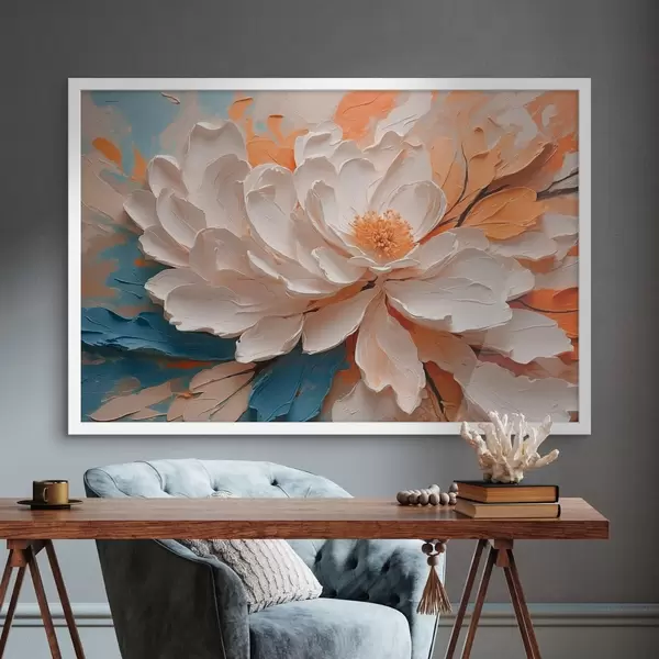 Poster Valge lill õlimaalide stiilis Nr f42528