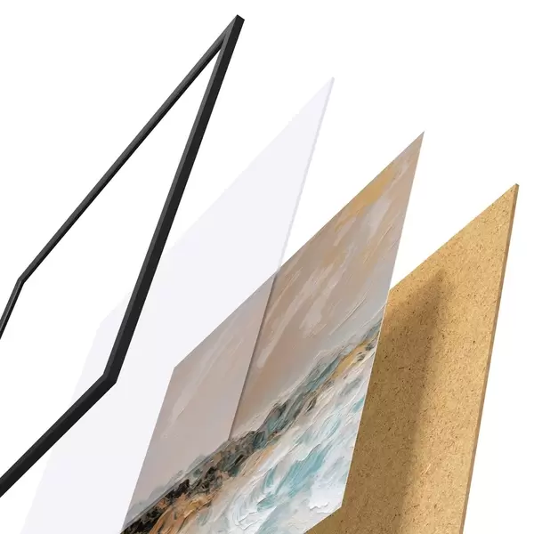 Plakat koosneb raamist, pleksiklaasist, trükitud pildist ja puitlaastplaadist alusplaadist. Tänu tagaküljel olevatele kinnitustele saab plakati kohe seinale riputada.