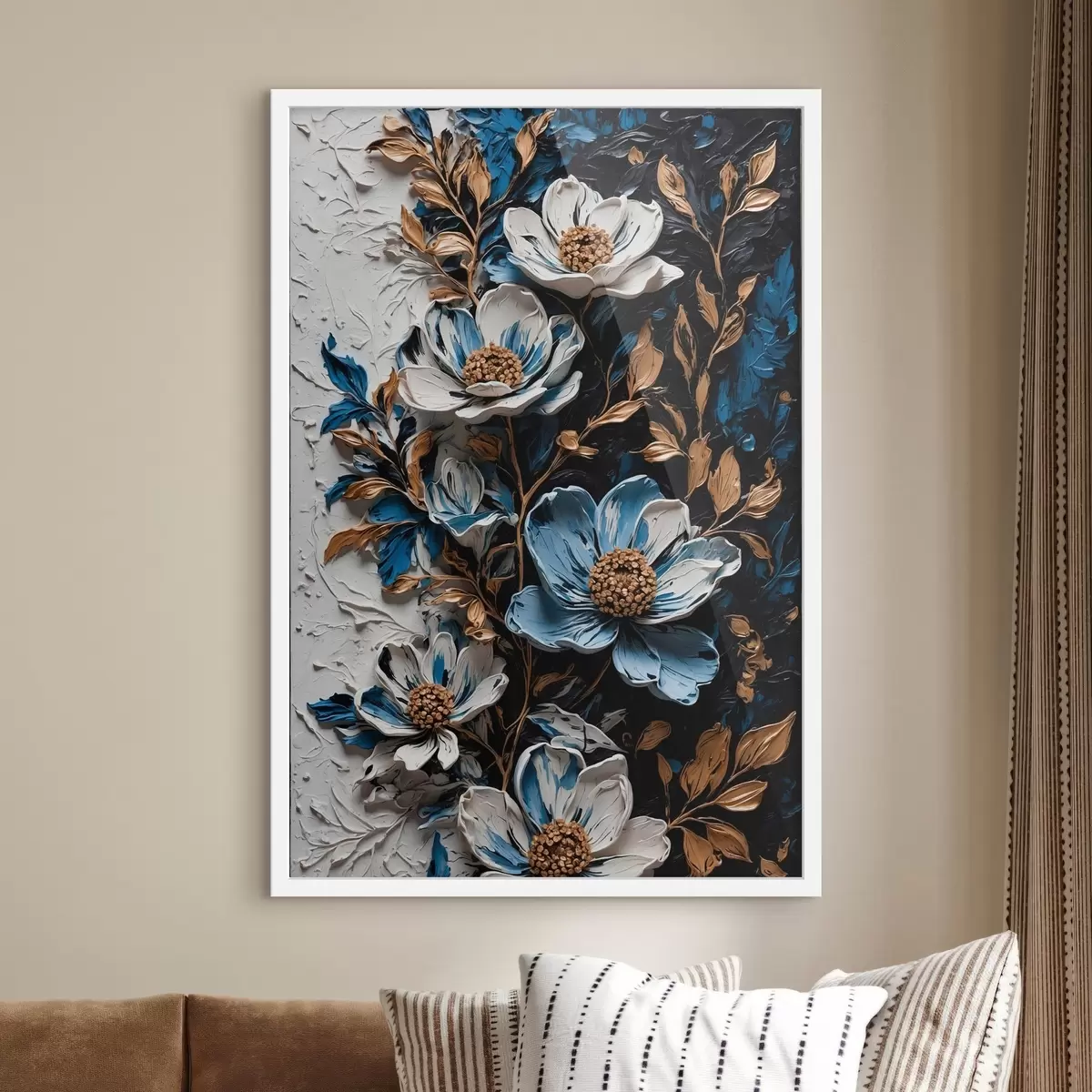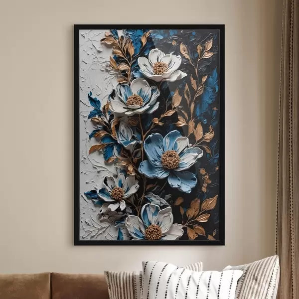 Poster Lilled ja varred mustal ja valgel taustal õlimaali stiilis Nr f42532
