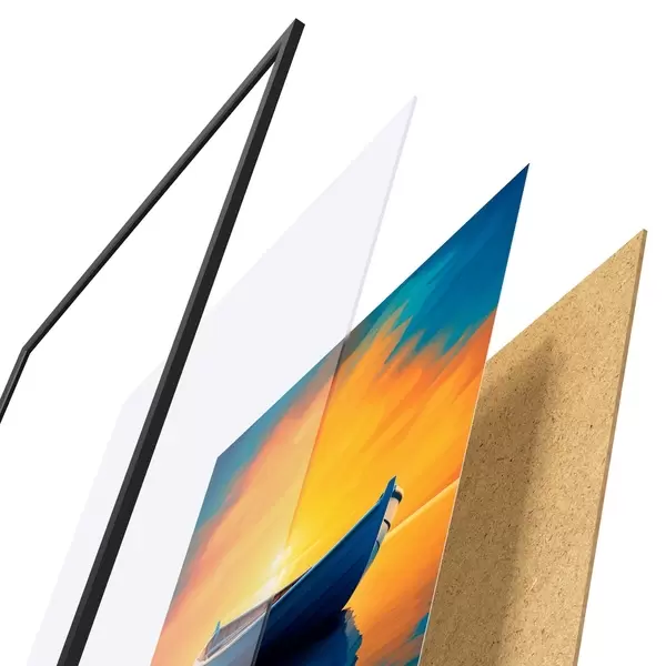 Plakat koosneb raamist, pleksiklaasist, trükitud pildist ja puitlaastplaadist alusplaadist. Tänu tagaküljel olevatele kinnitustele saab plakati kohe seinale riputada.