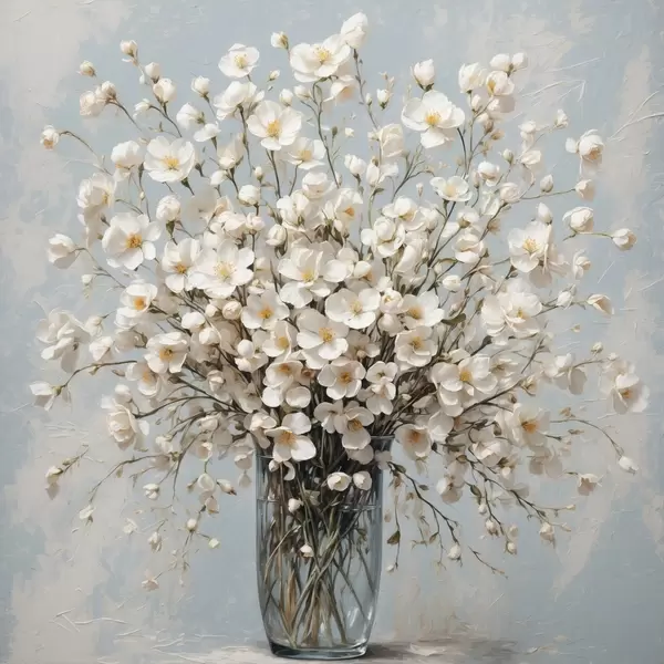 Plakat Valged lilled läbipaistvas vaasis f42547