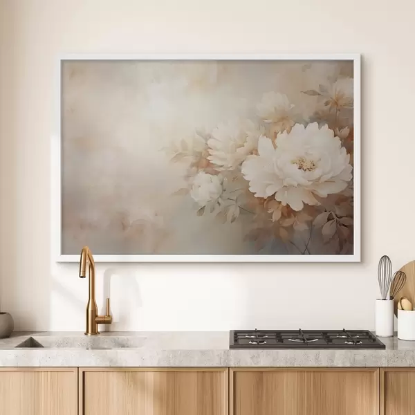 Poster Õrnad ploomid pastelsetes kreemikas toonides hägusel taustal, mis loob pehme ja romantilise meeleolu. Nr f42558