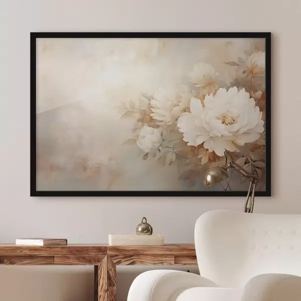 Poster Õrnad ploomid pastelsetes kreemikas toonides hägusel taustal, mis loob pehme ja romantilise meeleolu. Nr f42558