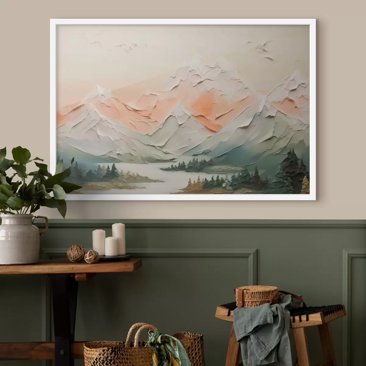 Plakat Mäed jõe ääres pintslitõmmete imitatsioon f42589
