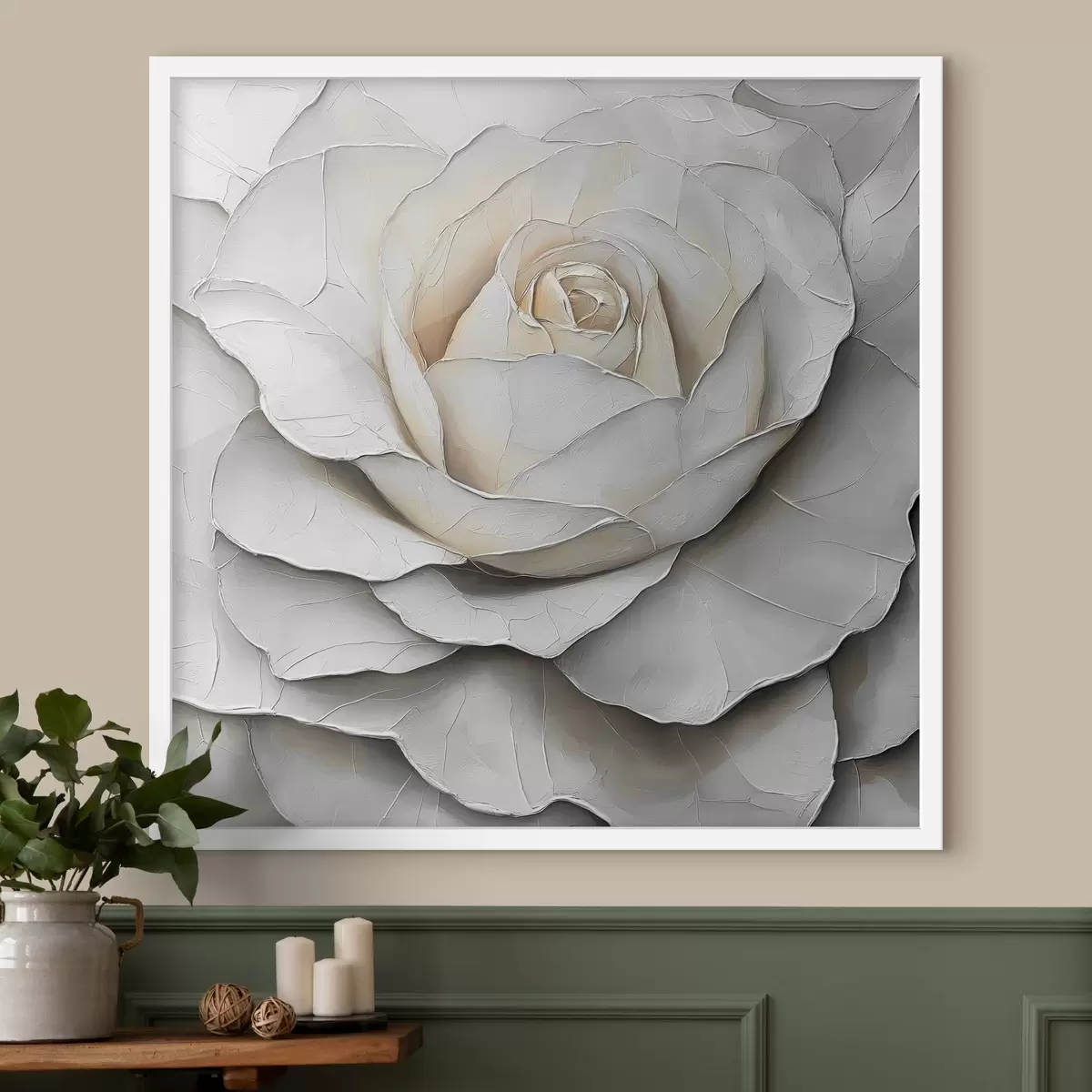 Poster Valge roos õlimaalide stiilis Nr f42603