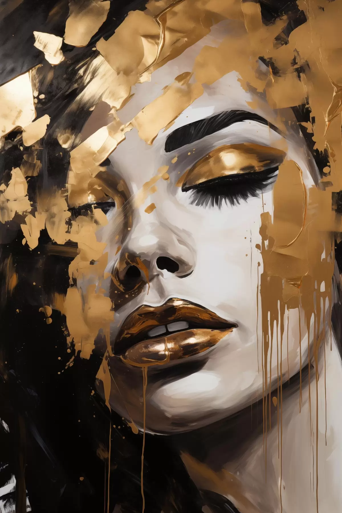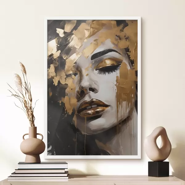 Poster Abstraktne portree naisest, millel on rikkalikud pintslitõmbed soojades toonides, luues elava ja dramaatilise pildi. Nr f42619