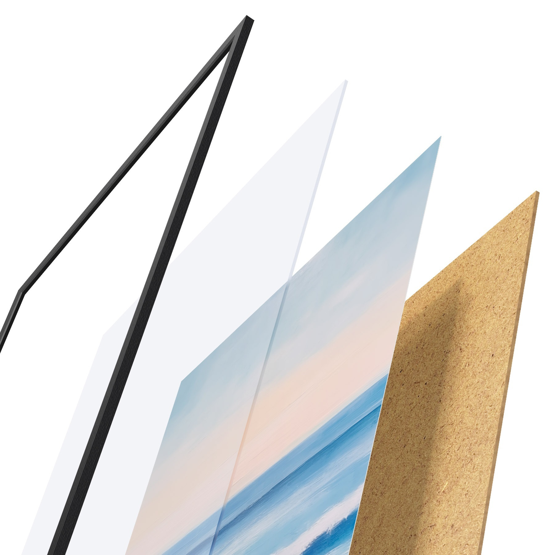 Plakat koosneb raamist, pleksiklaasist, trükitud pildist ja puitlaastplaadist alusplaadist. Tänu tagaküljel olevatele kinnitustele saab plakati kohe seinale riputada.