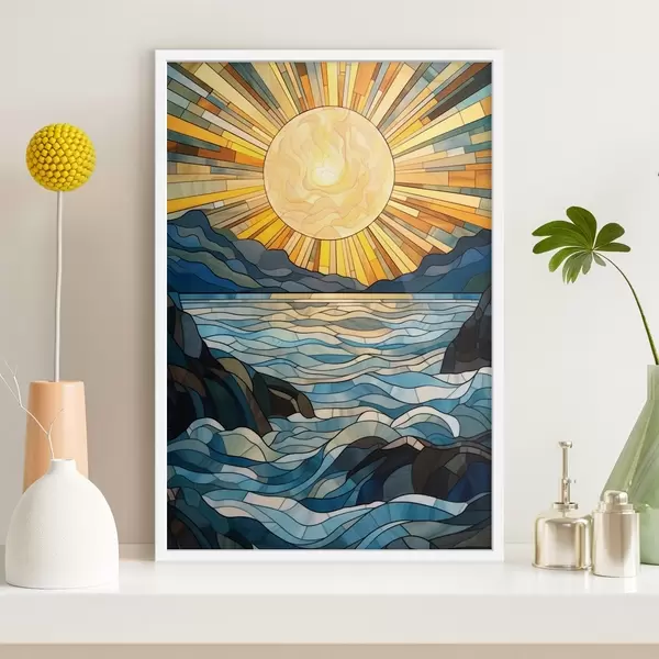 Poster Päike ja lained vitraažikunsti stiilis Nr f42654