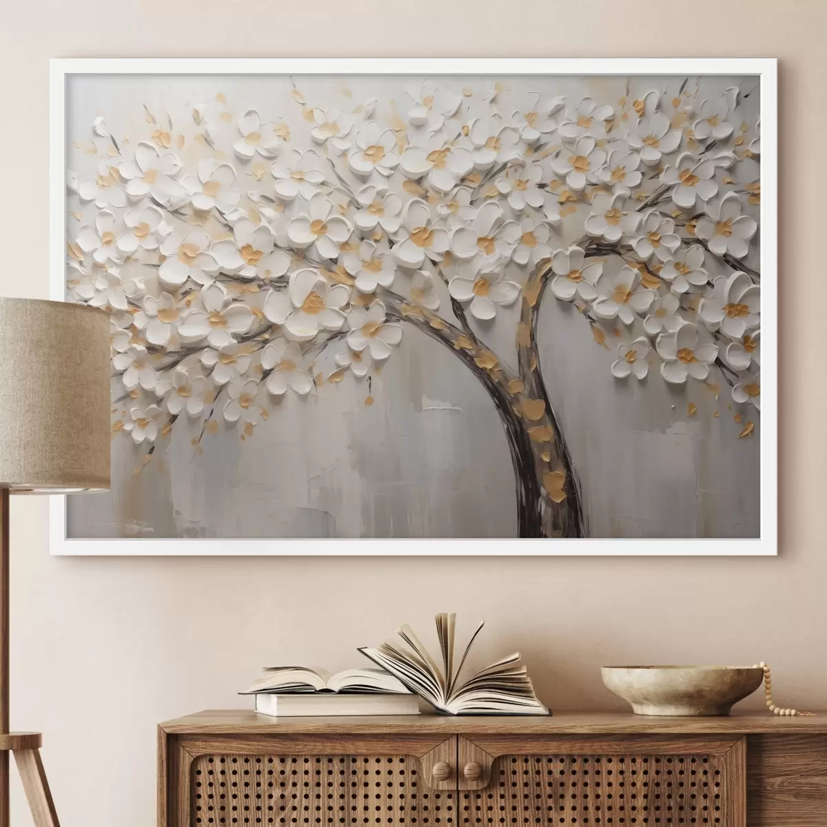 Plakat Volümeetriline kujutis õitsvast puust f42658