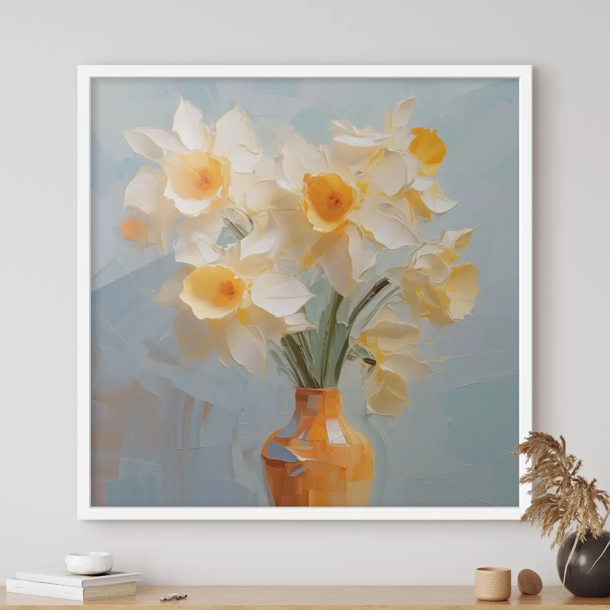 Plakat Narsirooside kimp vaasis, mis imiteerib maali f42749