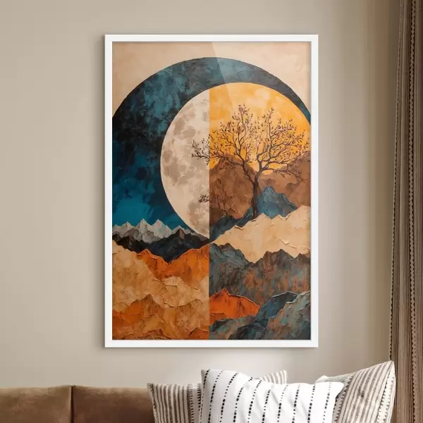 Plakat Multikooliline mägi kuuvarjundil, mis on leitud akfüülistes maalides f42770