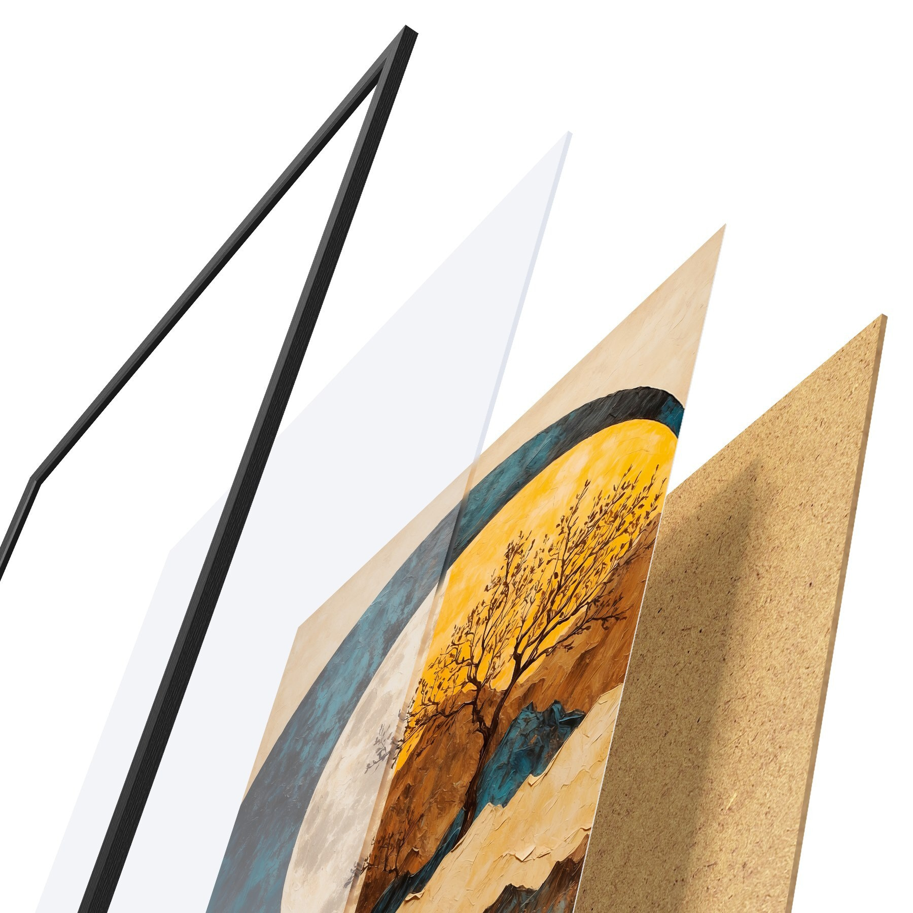 Plakat koosneb raamist, pleksiklaasist, trükitud pildist ja puitlaastplaadist alusplaadist. Tänu tagaküljel olevatele kinnitustele saab plakati kohe seinale riputada.