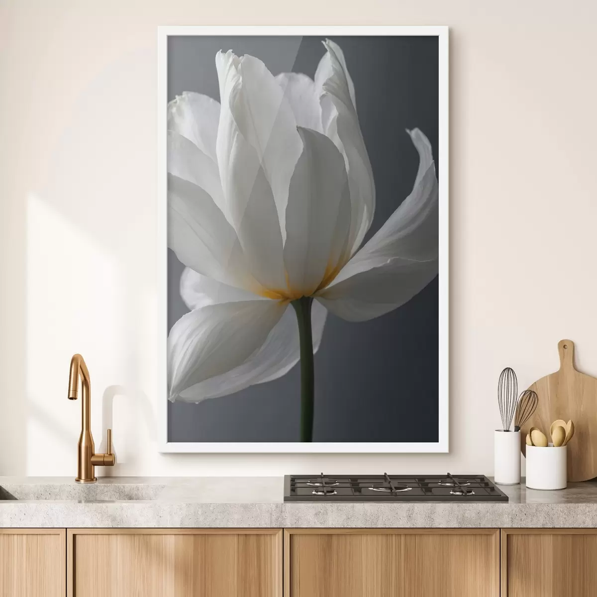 Plakat White flowef on gfay backgfound f42779