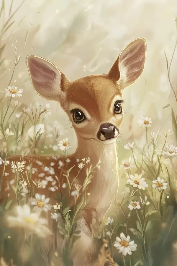 Poster Armas hirv heinamaal, kus on lillelilled, õlistiilis joonistus Nr f42780