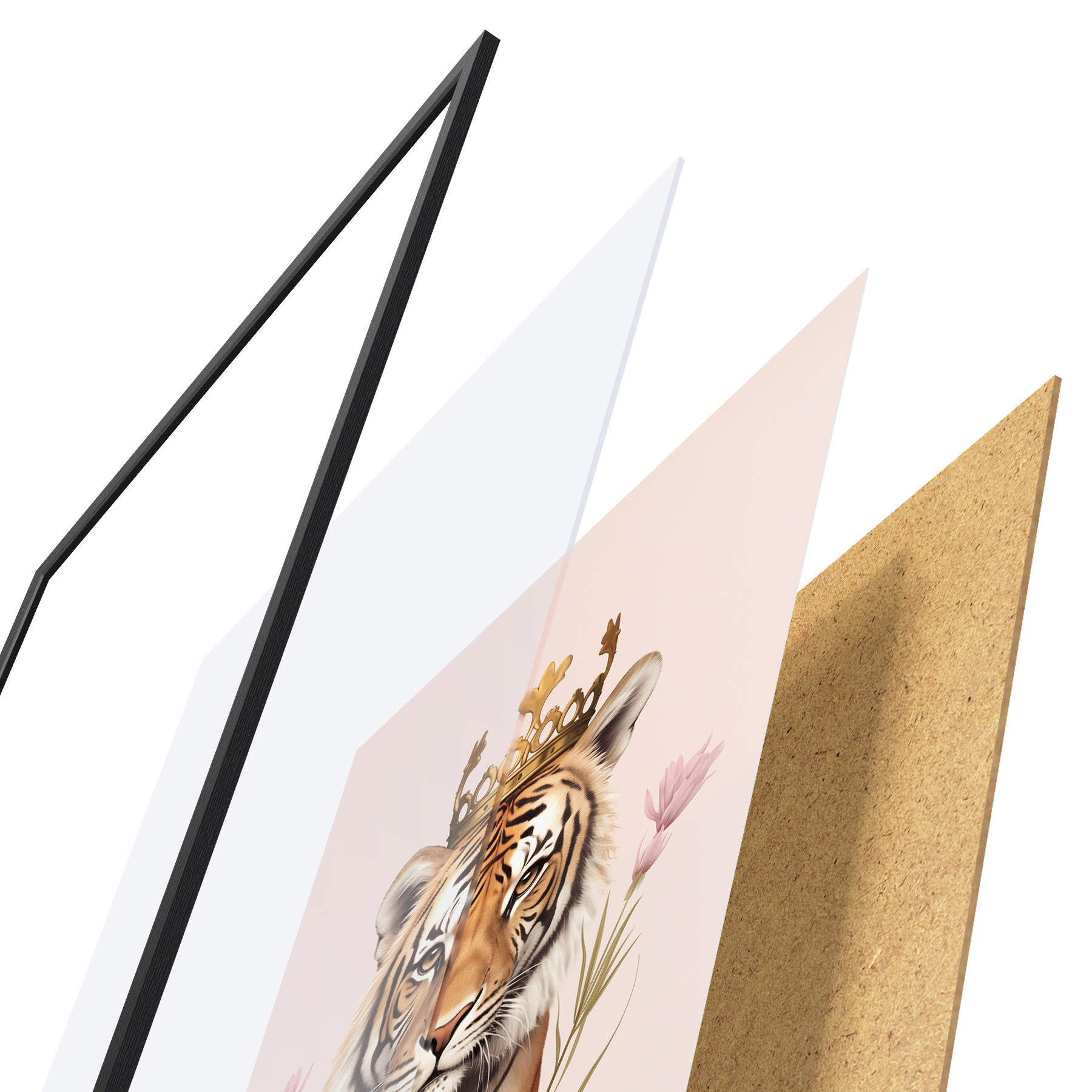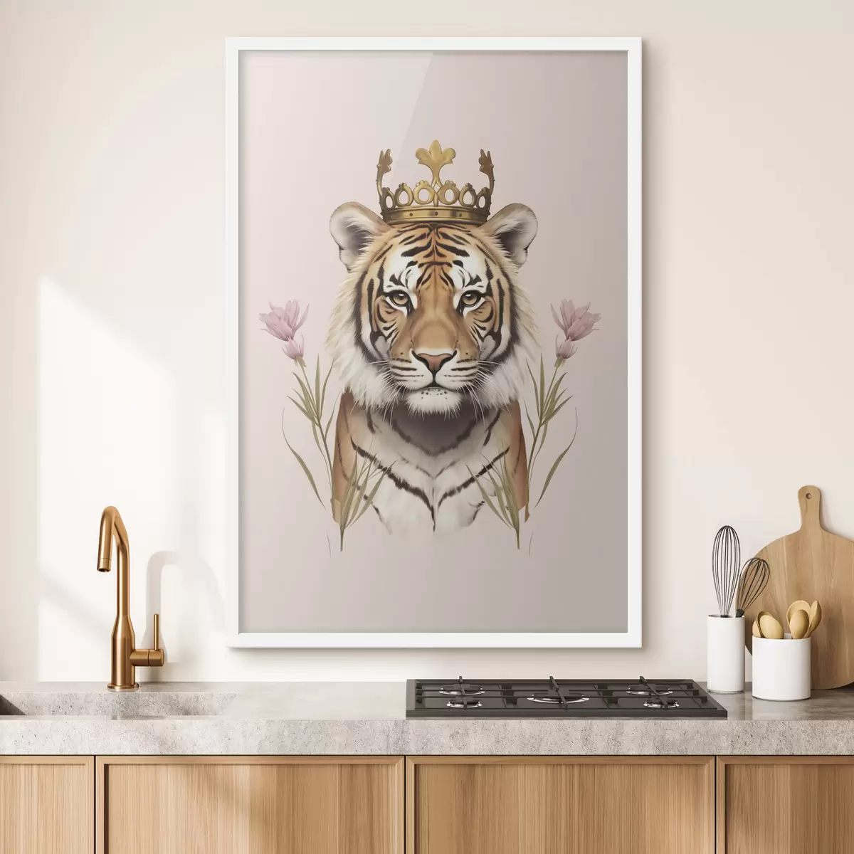 Plakat Krooniga tiiger, roosa taust, tulbid f42782