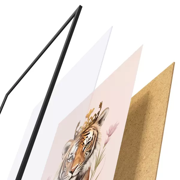 Poster Krooniga tiiger, roosa taust, tulbid Nr f42782