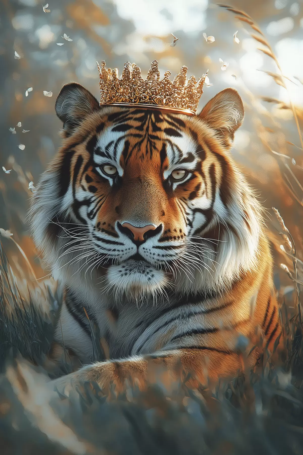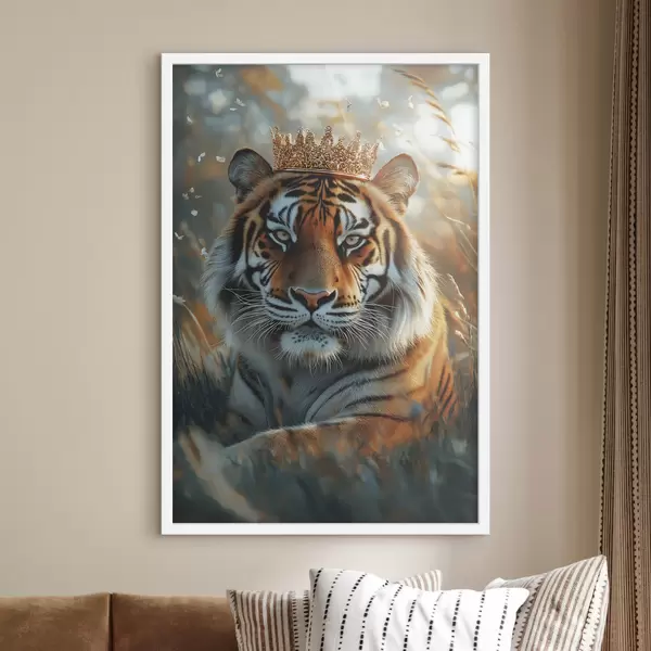 Plakat Ilus tiiger krooniga, suvine heinamaa, realism f42786