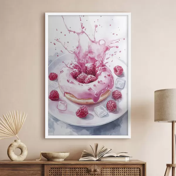 Poster Maitsev donit taldrikul, vahukoor, vaarikad, jää Nr f42788