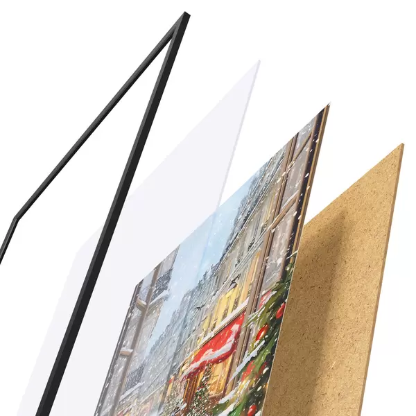 Plakat koosneb raamist, pleksiklaasist, trükitud pildist ja puitlaastplaadist alusplaadist. Tänu tagaküljel olevatele kinnitustele saab plakati kohe seinale riputada.