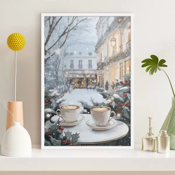 Plakat Tassid kohvi hubases kohvikus, talvine esteetika, boho stiil f42797
