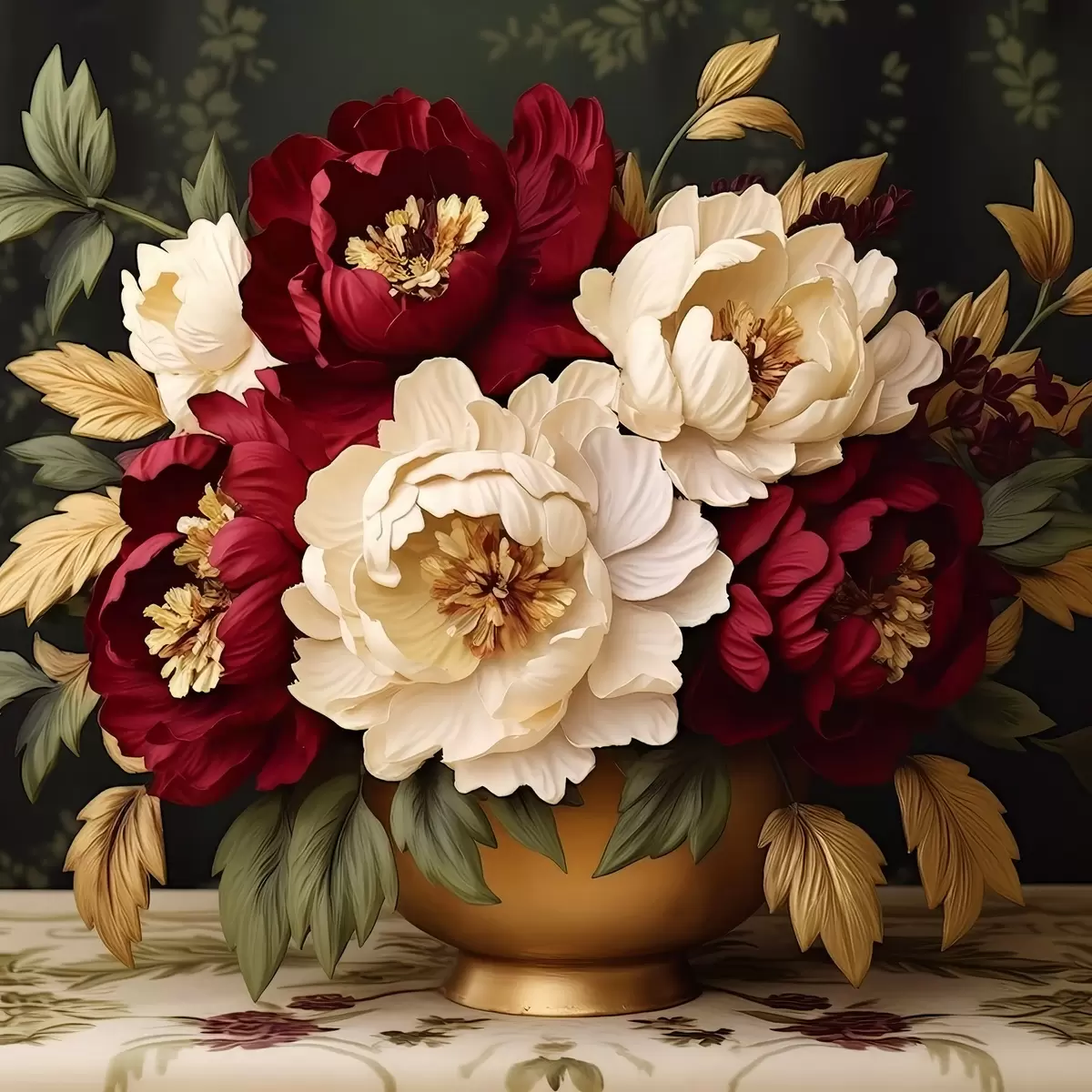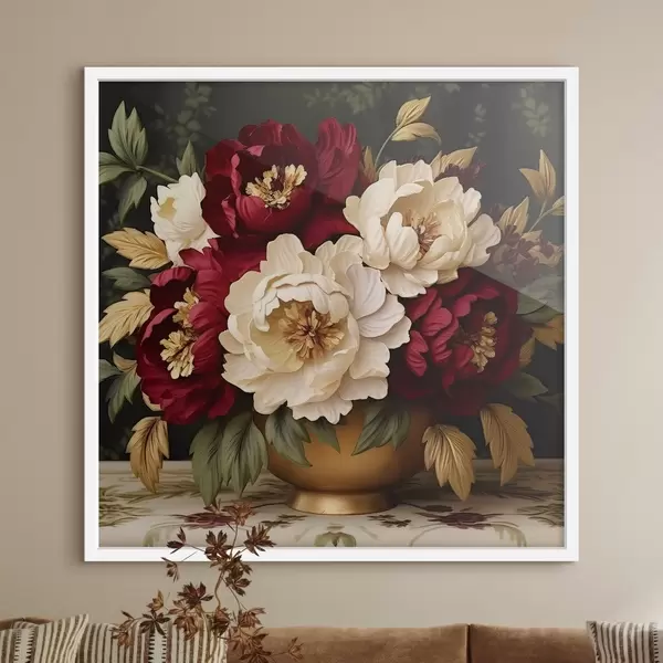 Plakat Punased ja valged pojengid vaasis f42820