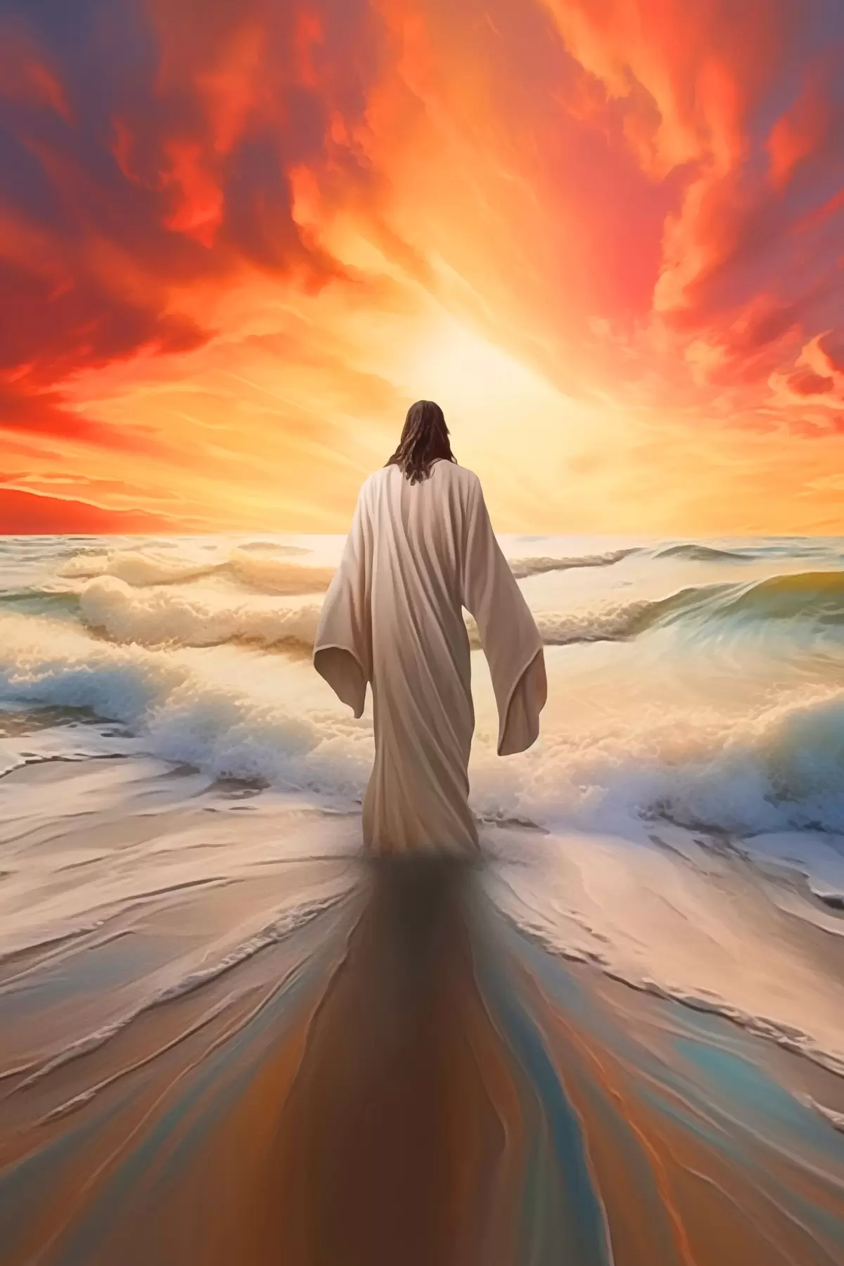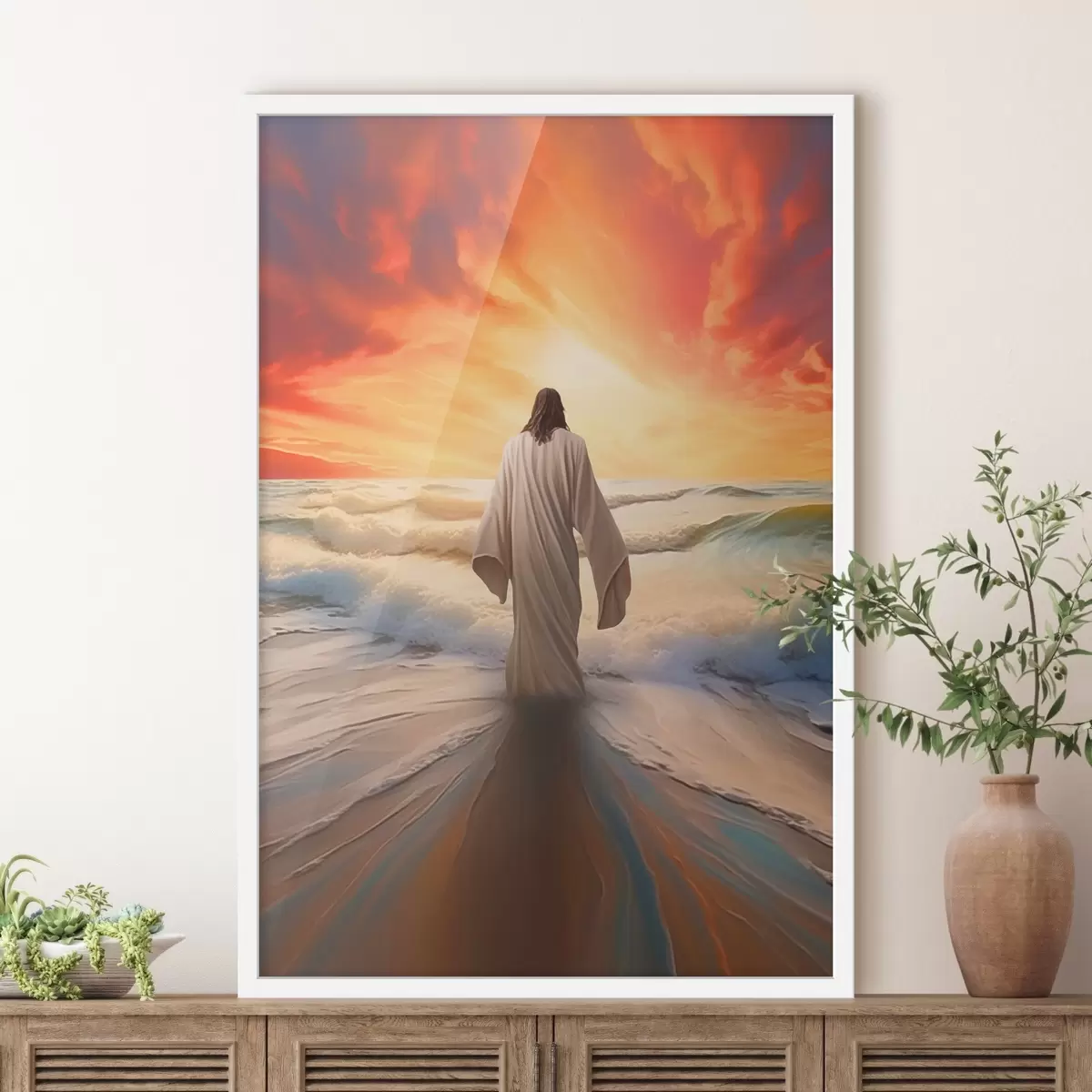 Plakat Mees vee ääres päikeseloojangu taustal f42824