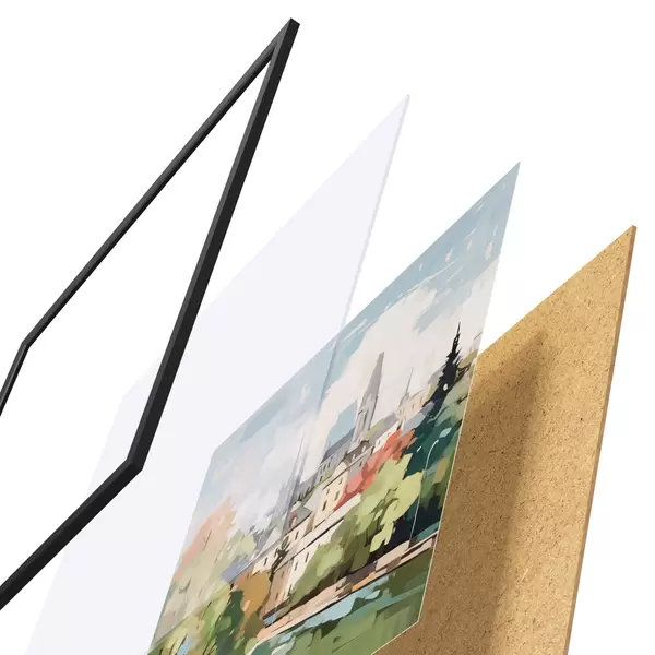 Plakat koosneb raamist, pleksiklaasist, trükitud pildist ja puitlaastplaadist alusplaadist. Tänu tagaküljel olevatele kinnitustele saab plakati kohe seinale riputada.