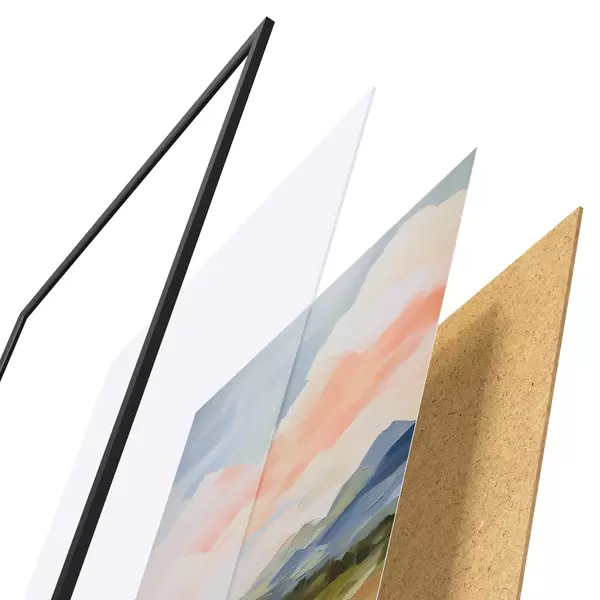 Plakat koosneb raamist, pleksiklaasist, trükitud pildist ja puitlaastplaadist alusplaadist. Tänu tagaküljel olevatele kinnitustele saab plakati kohe seinale riputada.